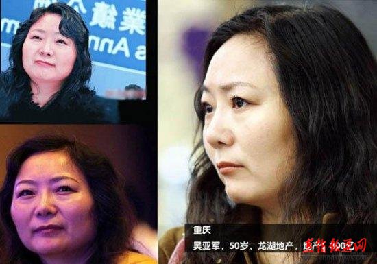 重庆吴亚军(女) 50岁 龙湖地产地产300亿人民币 。
