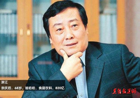 浙江宗庆后 68岁 娃哈哈食品饮料820亿人民币。