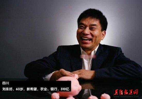 四川刘永好 63岁 新希望农业、银行310亿人民币。