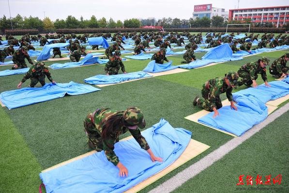 山东日照军训毕训仪式展示百人叠被(2)