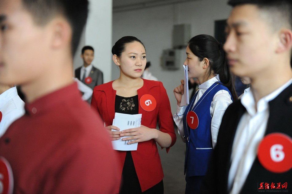 山东空乘招聘现场考生秀玉腿 父母在门外围观(5)
