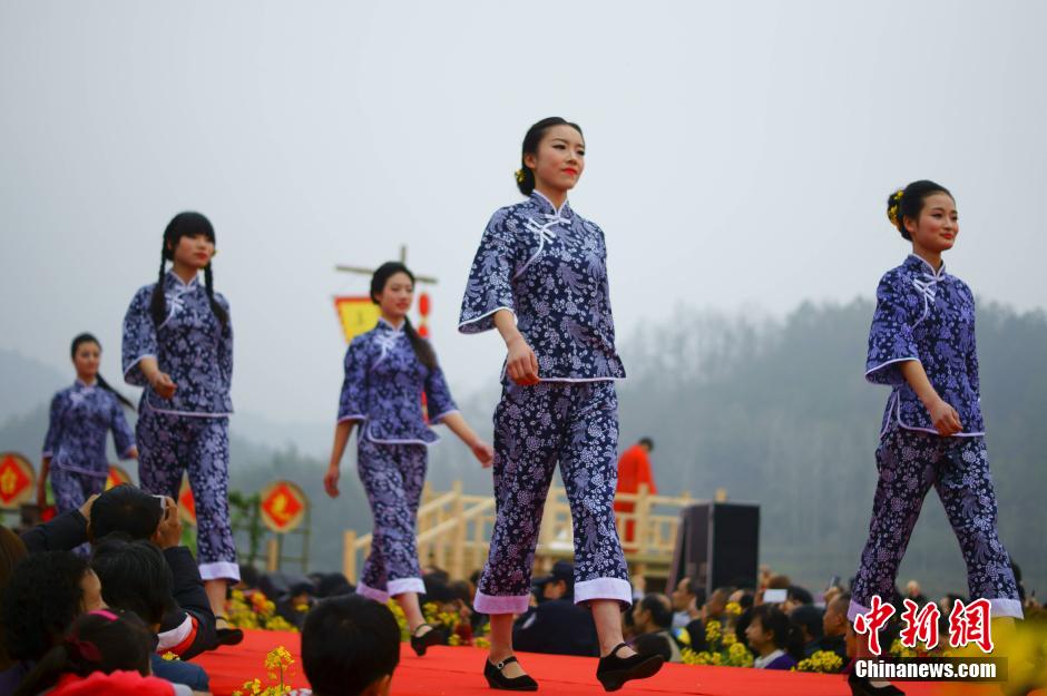 (原标题:湖北宜昌油菜花节上演乡村T台服装秀)