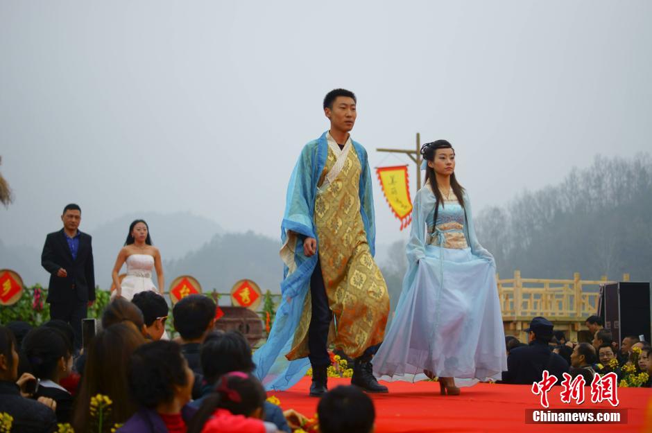 湖北宜昌油菜花节上演乡村T台服装秀(9)