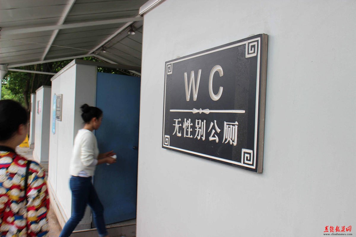 4月15日,重庆,市民在“无性别公厕”如厕。