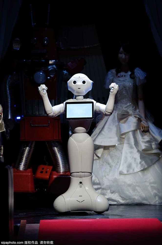图为法国公司Aldebaran设计的“胡椒”机器人,是本次婚礼的司仪。