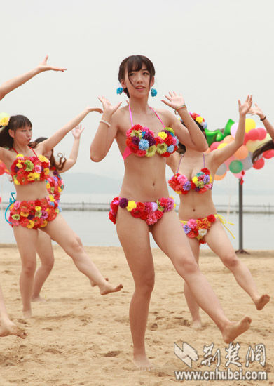 汉版“AKB48女团”穿鲜花比基尼热舞东湖沙滩浴场(7)
