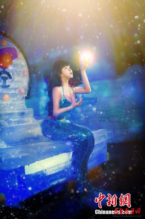 近日,一场美轮美奂的冰雪嘉年华在江西龙虎山景区举行,一位性感美女冒着-10℃的低温,身着一袭蓝色的人鱼装,或躺卧在冰块上化身妩媚“美人鱼”,或站着和冰雕卡通人物合影,演绎一幅幅妩媚的画面。据了解,龙虎山冰雪嘉年华将一直持续到8月31日,该活动将在炎炎盛夏为游客带来既好玩又实惠的酷爽体验。余锴 摄