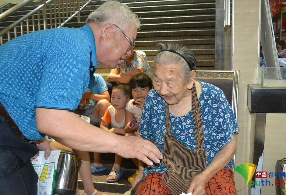 前天,一市民报料称:“在安康路的百顺农贸市场里,有个年近百岁的酱菜奶奶,她的摊位前每天生意都很兴隆,不断有市民来买咸菜酱菜。不论新老顾客光临,老奶奶总是笑脸相迎,非常开心地做生意赚钱。”昨天,记者来到百顺副食菜市场,在市场楼梯拐角处见到坐在椅子上的酱菜奶奶,她上穿花色短袖,下着酱红色短裤,脖子上挂个钱袋。老人面容和蔼,一说话眼睛笑得眯成一条缝。 |