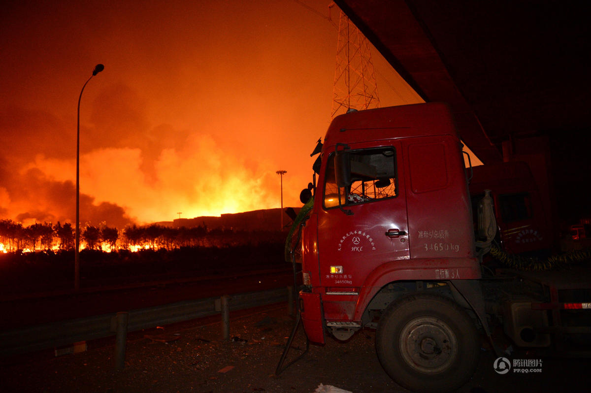 天津爆炸现场腾起蘑菇云 数十公里外有震感(4)