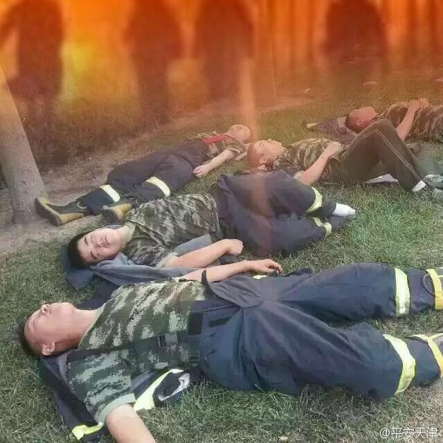 (原标题:爆炸现场消防员街头小憩 已奋战30个小时)