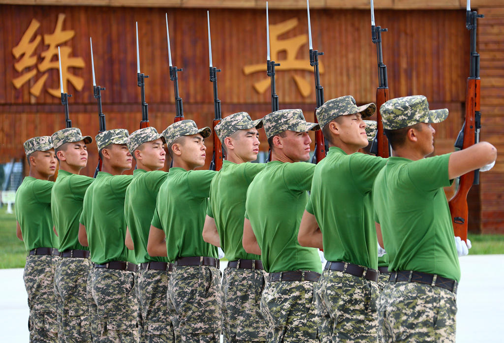 白俄罗斯、古巴、埃及、哈萨克斯坦、吉尔吉斯斯坦、墨西哥、蒙古国、巴基斯坦、塞尔维亚、塔吉克斯坦、俄罗斯等11个国家派出方队参加阅兵,阿富汗、柬埔寨、斐济、老挝、瓦努阿图、委内瑞拉等6个国家派出代表队参加阅兵。图为蒙古国参阅方队在进行受阅前的基础训练。 |