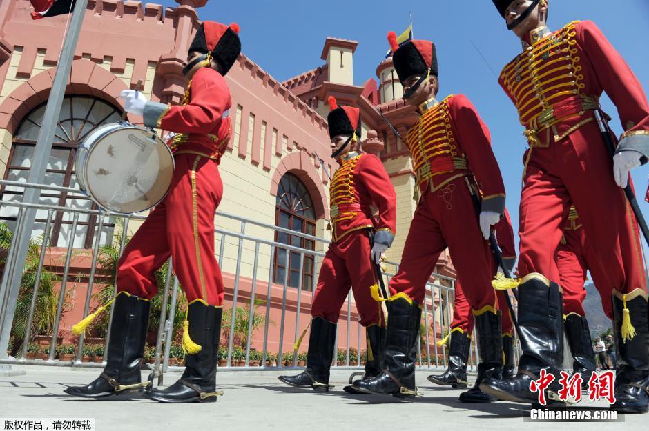委内瑞拉:2013年3月28日,委内瑞拉加拉加斯,委内瑞拉仪仗队护送已故总统查韦斯遗体回家。