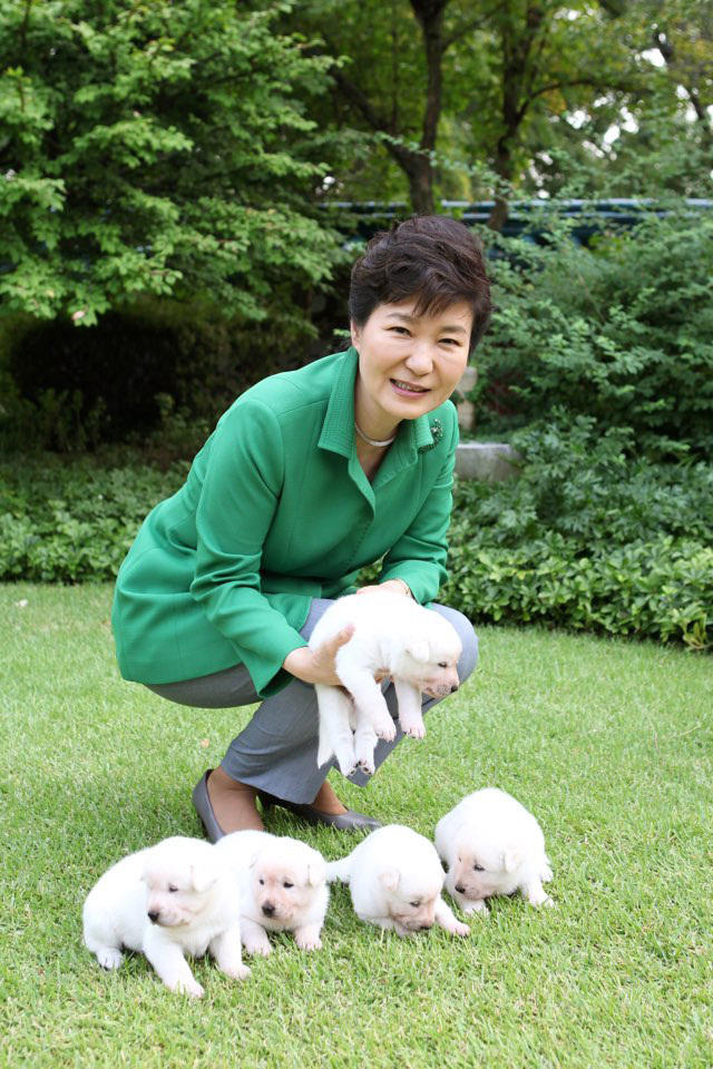 韩国总统朴槿惠网上秀与爱犬嬉戏照片(5)