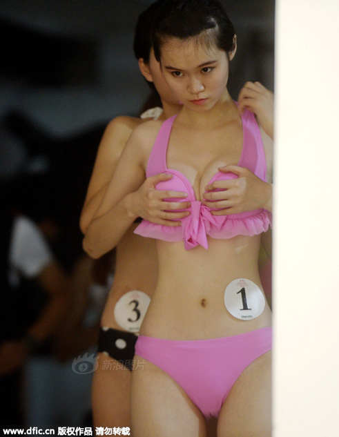 探访模特大赛后台 女生穿泳装席地而坐(2)