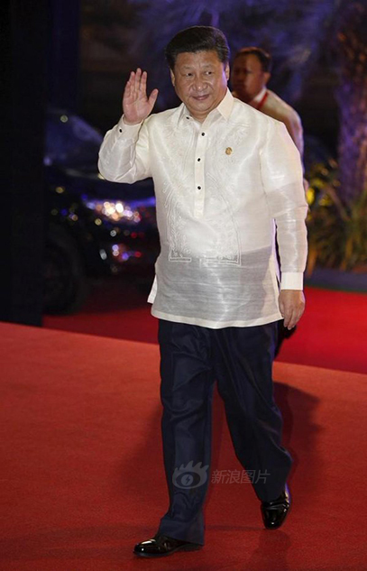 国家主席习近平身穿当地特色服饰“巴隆他加禄”,出席菲律宾总统为与会领导人举行的欢迎晚宴。