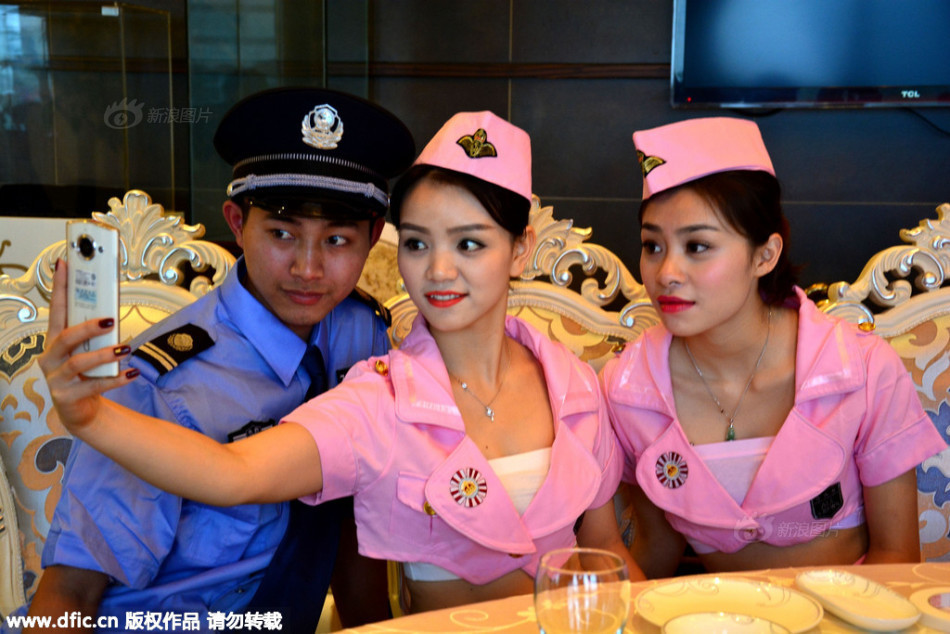 “空姐”与“城管”自拍。▲