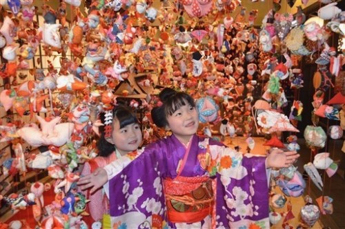 据报道,在作为会场的稻取文化公园的雏之馆内,装饰了1万多件手工制作的布艺兔子、桃子等挂饰。