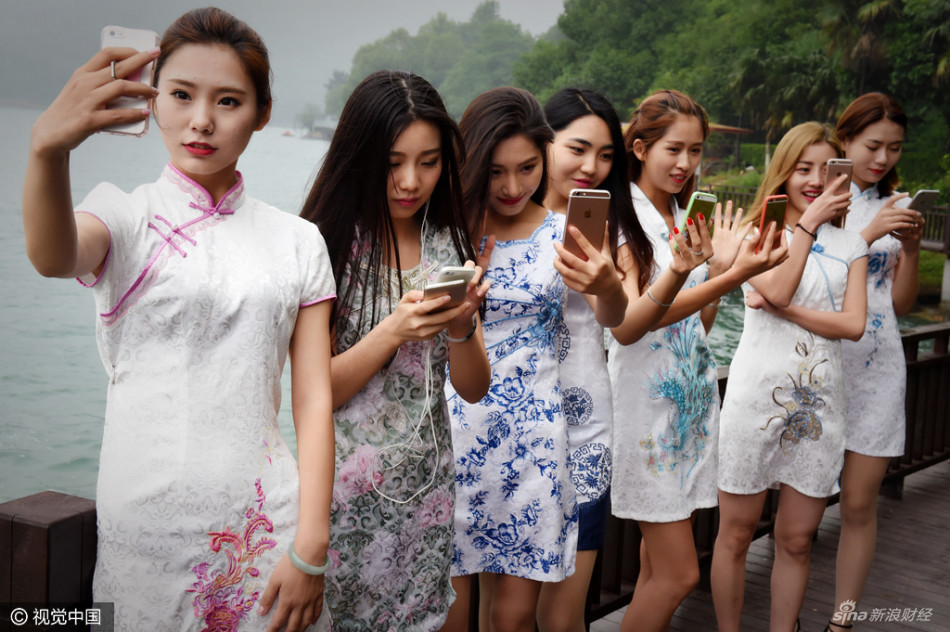 景区新玩法 旗袍美女主播湖边直播(6)