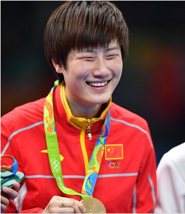 丁宁夺女单冠军登领奖台 咬金牌露灿笑(6)