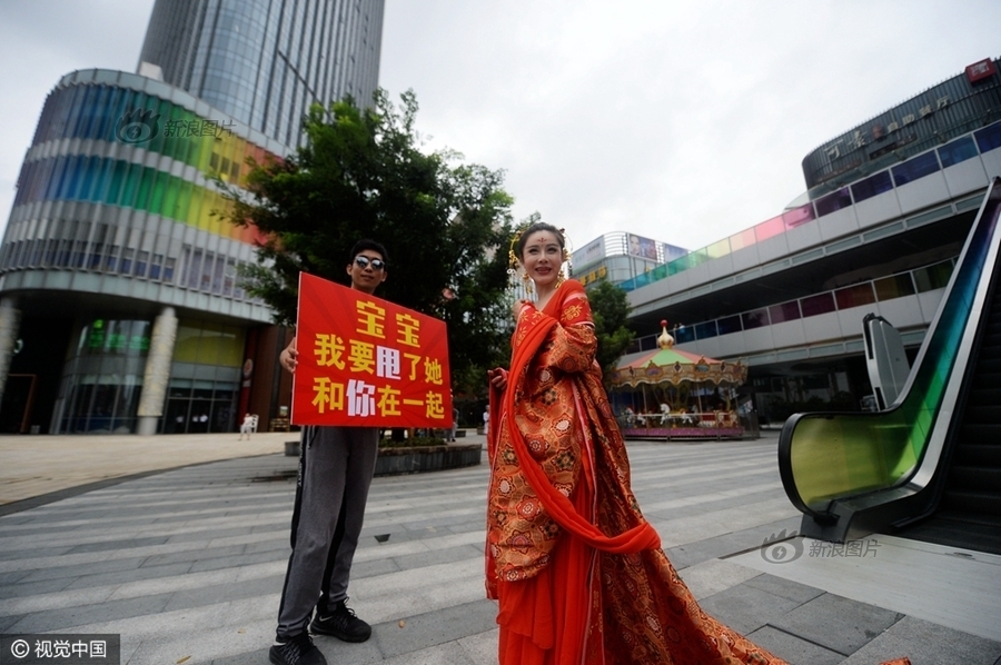 女博士穿唐装扮武媚娘 男友举牌个性示爱(8)
