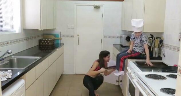 美女分享厨房健身法 运动做饭带娃3不误(4)