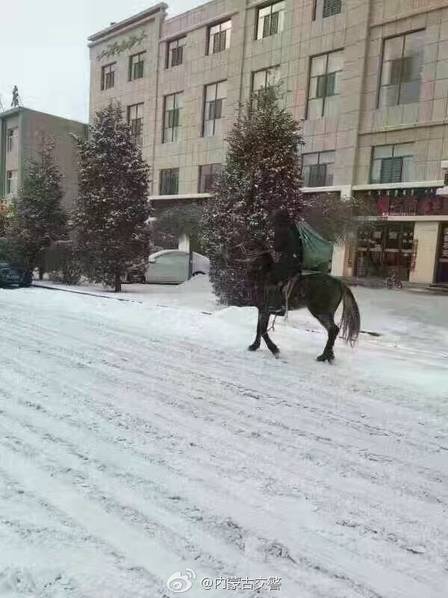 内蒙古突降暴雪 快递员骑马送包裹(4)