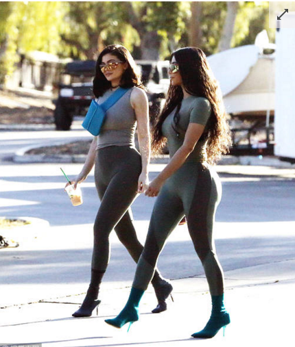 凯莉·詹娜的身材与她二姐金·卡戴珊有些相似,都属于比较丰满的。不过凯莉的脸蛋更为俊俏,即使当上了妈妈也依然有少女的感觉。图为6月11日,凯莉·詹娜和姐姐金·卡戴珊现身街头。两人穿姐妹装表情步伐神同步,两人身材凹凸有致如出一撤,姐妹俩尽显亲密无间。 |