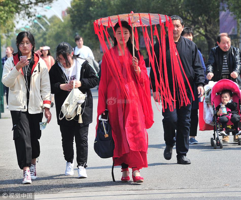 【直报网北京3月18日讯】(新浪图片)2019年3月17日,上海,穿着古装、汉服游园赏樱的年轻人络绎不绝,成了樱花节上一道“穿越”樱林的靓丽风景,