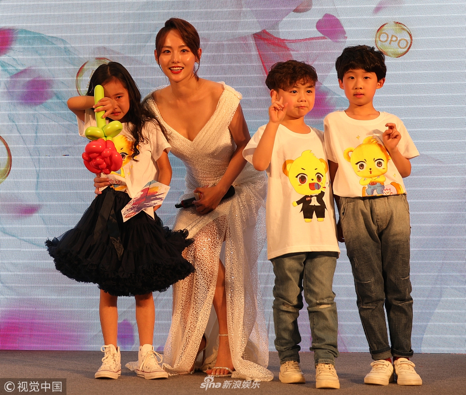 (原标题:张嘉倪穿开叉白裙女神范儿十足 俯身安慰小萝莉无惧低胸)