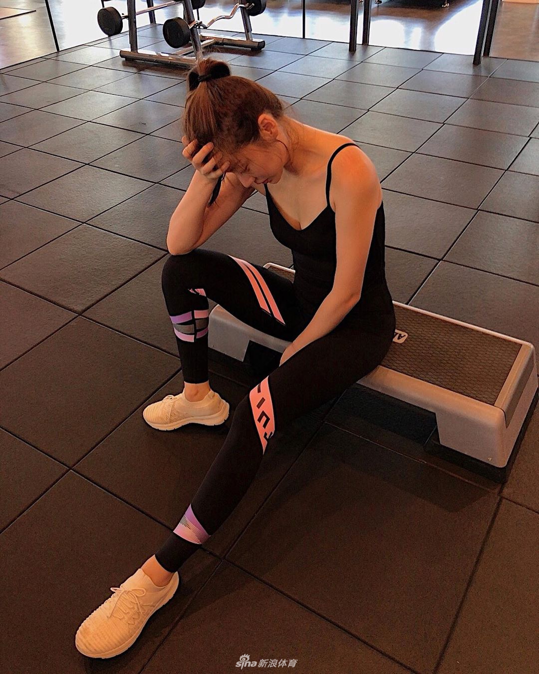 美女健身累到瘫坐地上 好身材全靠每日坚持(5)