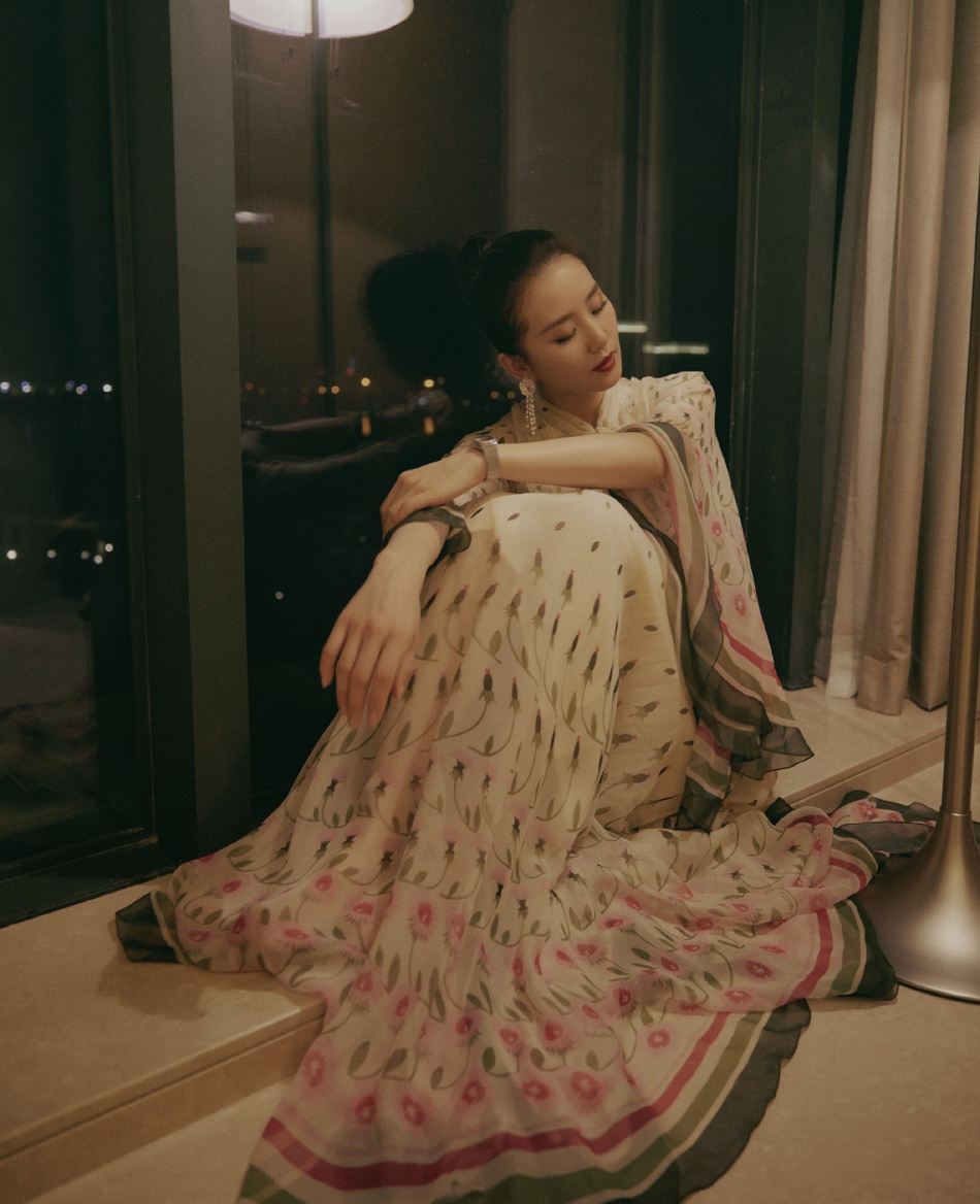(原标题:刘诗诗穿薄纱长裙坐窗边 安静妩媚好撩人)