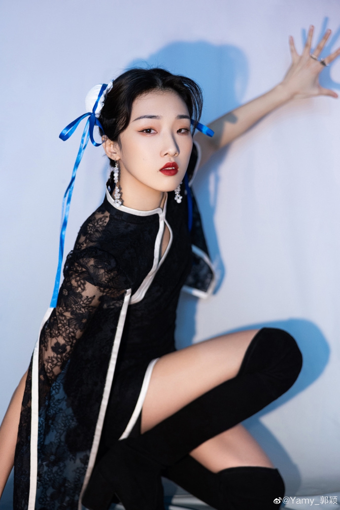 Yamy身穿黑色旗袍扎双发髻变身春丽(2)