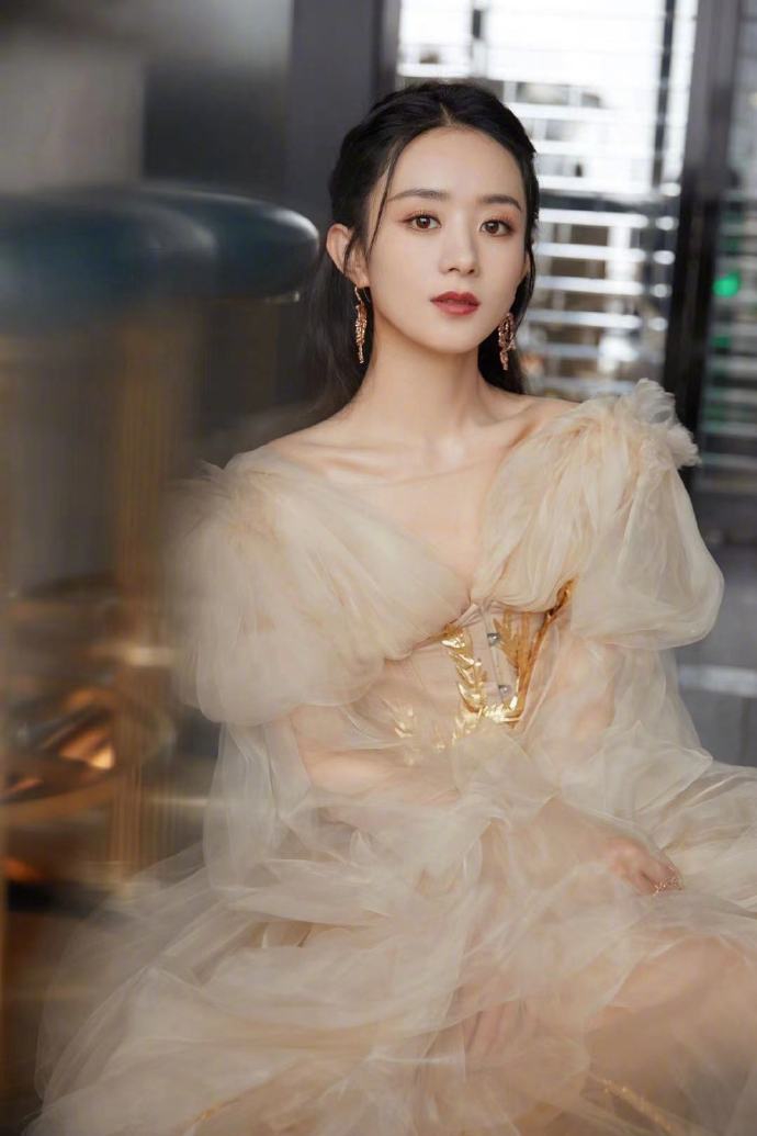 赵丽颖穿轻纱鎏金裙优雅又不失灵动(6)