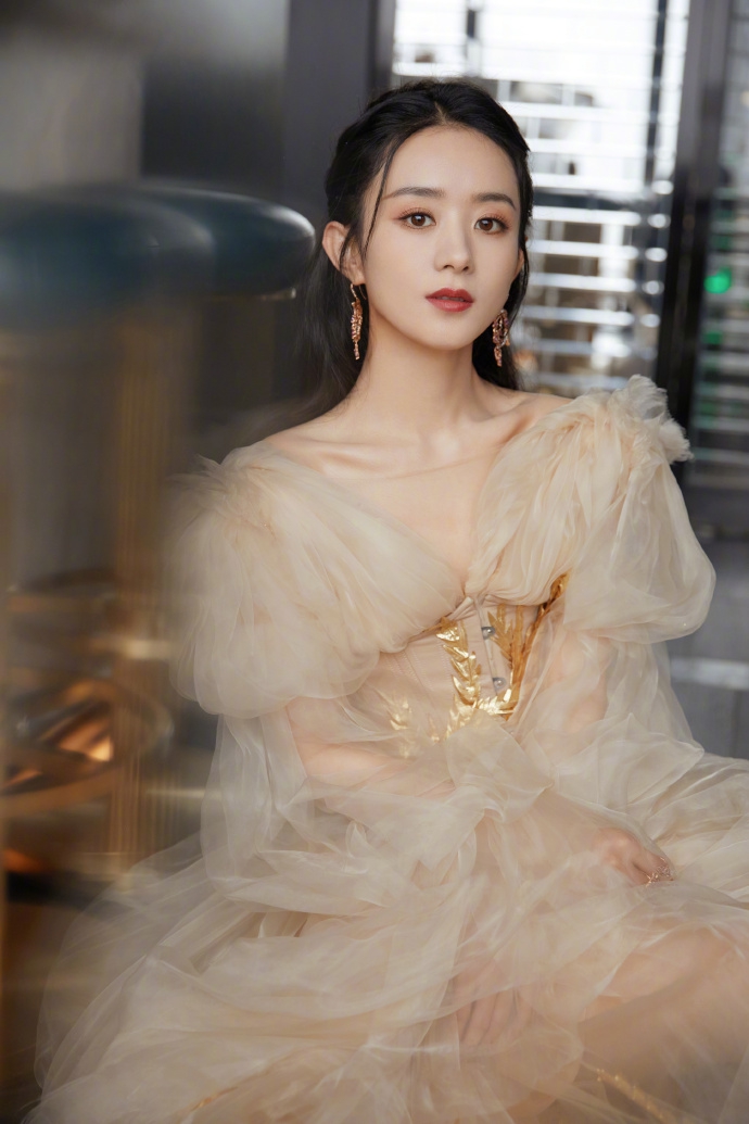 (原标题:支持国货高定!赵丽颖穿轻纱鎏金裙优雅又不失灵动)