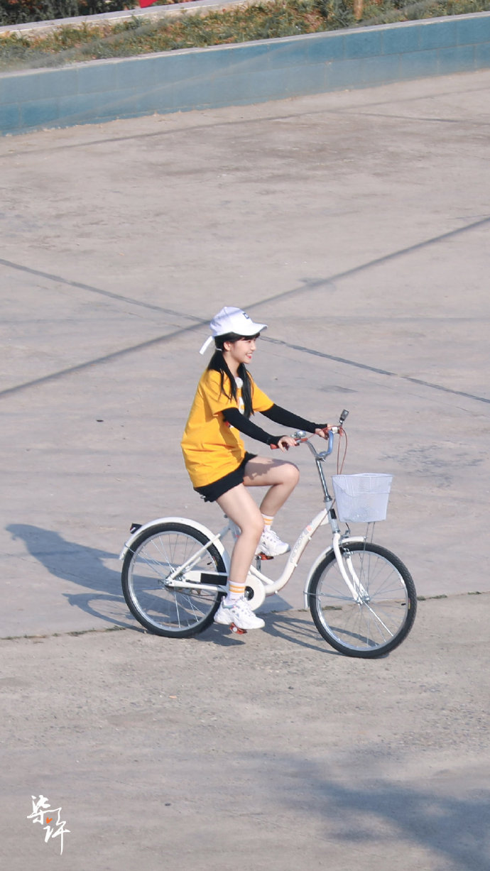 赖美云晒田野骑单车照 穿碎花裙甜美肆意(2)