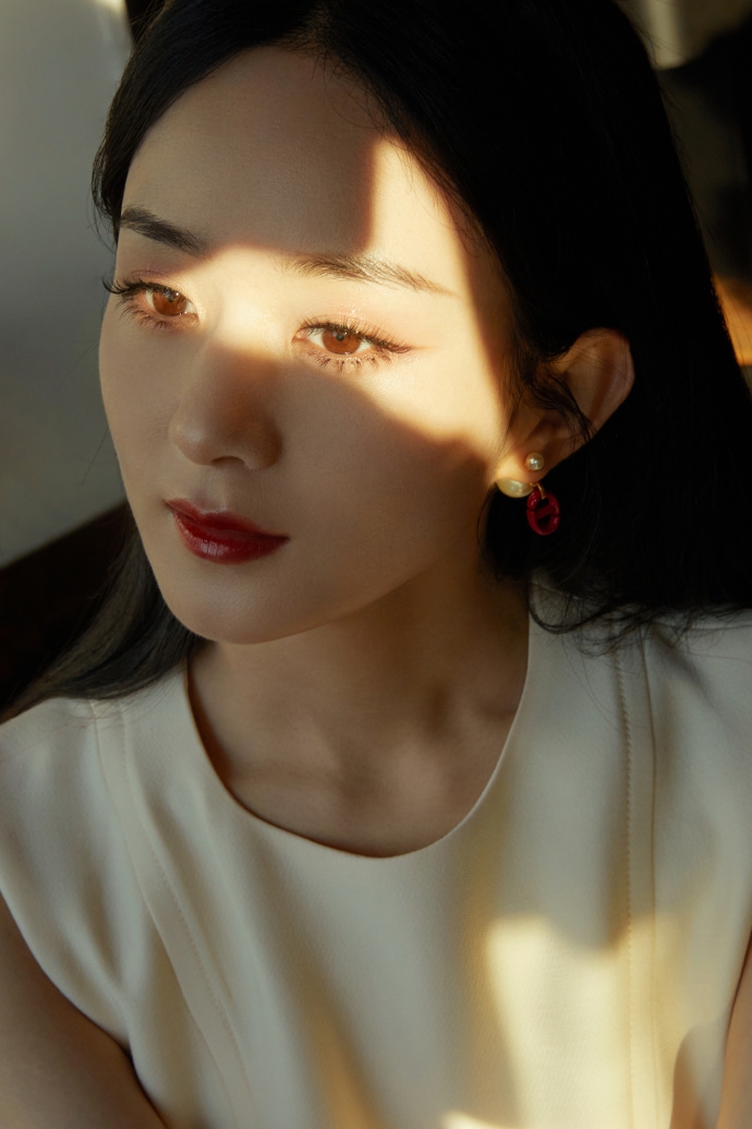 赵丽颖光影质感大片曝光 奶油白短裙温柔优雅(7)