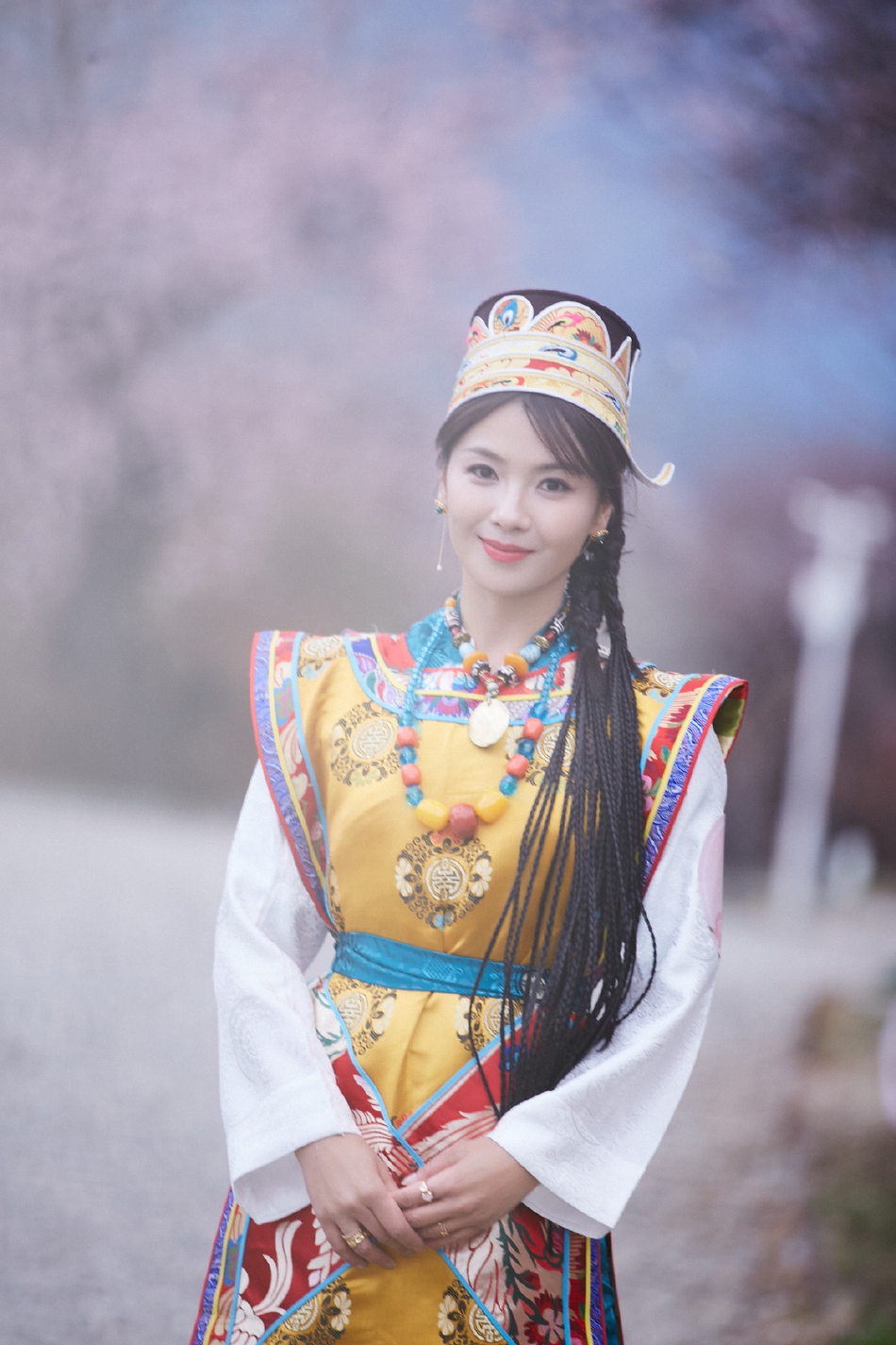 【直报网北京5月27日讯】(新浪图片)5月26日,刘涛工作室公布一组刘涛身穿藏族服装的写真,配文“幸得识卿桃花面,从此阡陌多暖春”。照片中,刘涛披着洁白哈达,在桃花树下,仰望天空,优雅美丽。