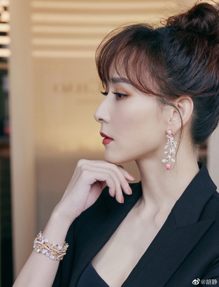 胡静扎丸子头低调优雅 黑色西装look飒爽不失温婉(3)