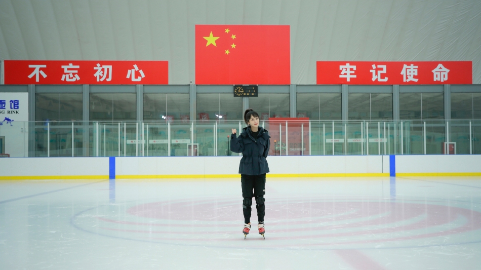 杨紫《梦想电台》花絮照 学习速滑表情呆萌可爱(3)