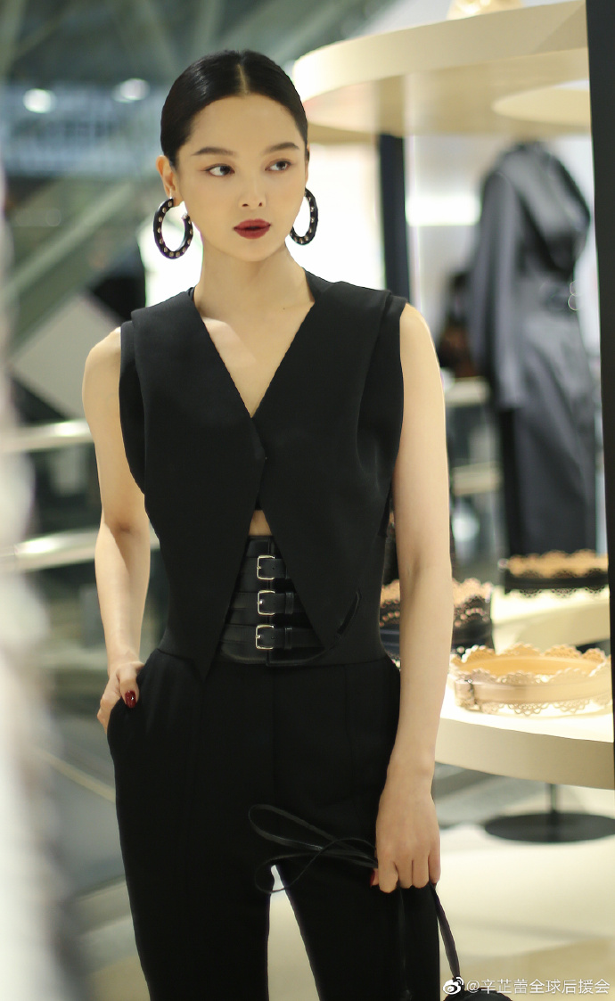 辛芷蕾出席活动生图能打 黑色无袖收腰连体裤造型酷飒冷御(2)