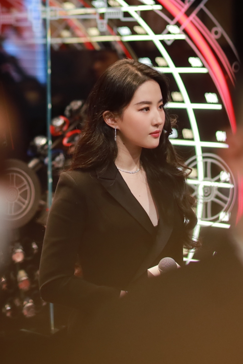 (原标题:刘亦菲穿黑色v领西装气场十足 卷发优雅温柔侧颜绝美)