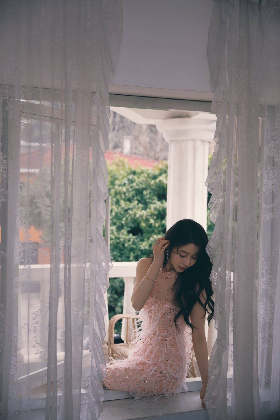 姜贞羽穿粉色羽毛裙梦幻甜美 亮片闪烁十分吸睛复古(8)