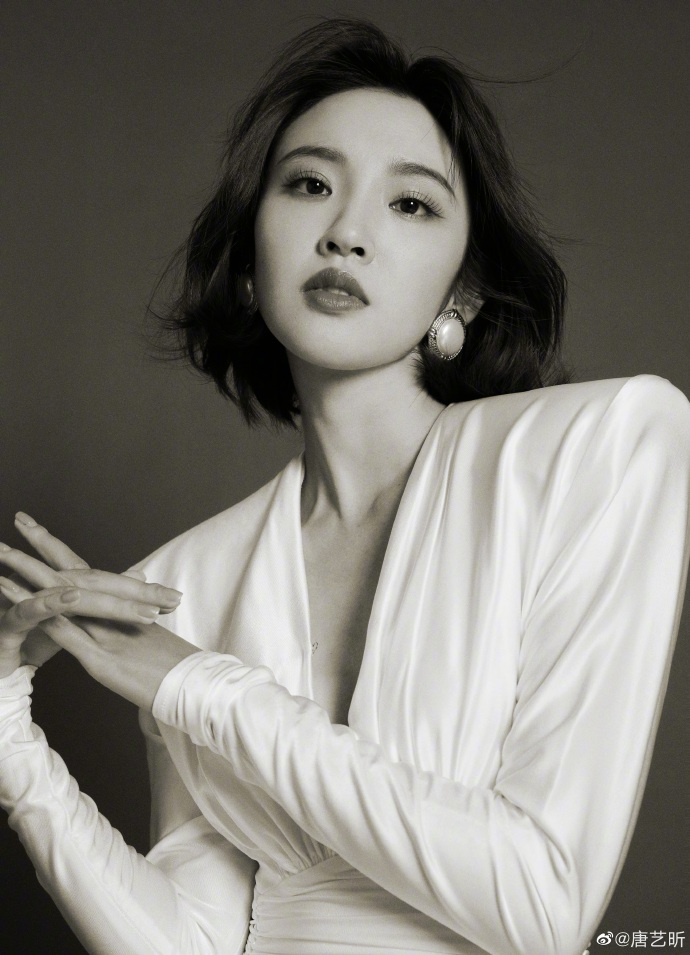 唐艺昕晒黑白氛围感大片 穿白色束腰长裙优雅性感(4)