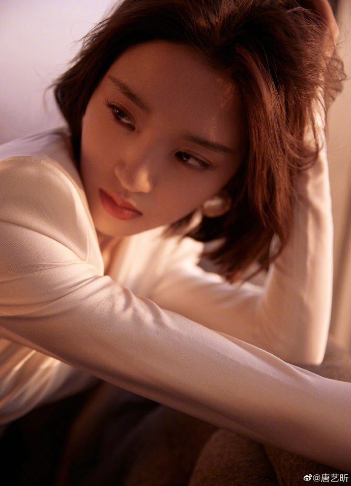 唐艺昕晒黑白氛围感大片 穿白色束腰长裙优雅性感(5)