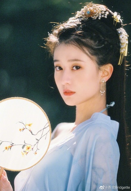 乔欣分享古装写真大片 穿蓝衣雪地中手持团扇仙气十足(7)