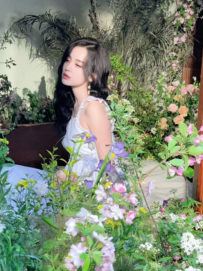 【直报网北京5月6日讯】(新浪娱乐)娜扎在微博晒出拍摄花絮live照,照片中的她被繁花簇拥,身穿木耳边吊带白裙,温婉可人。