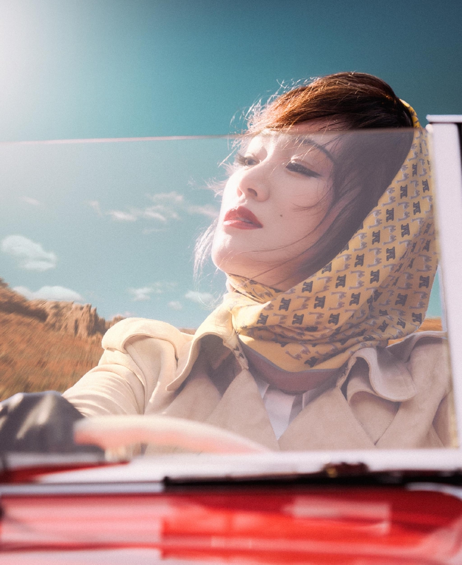 巩俐复古头巾造型大片气场全开 穿风衣搭配红唇妆容好霸气(2)