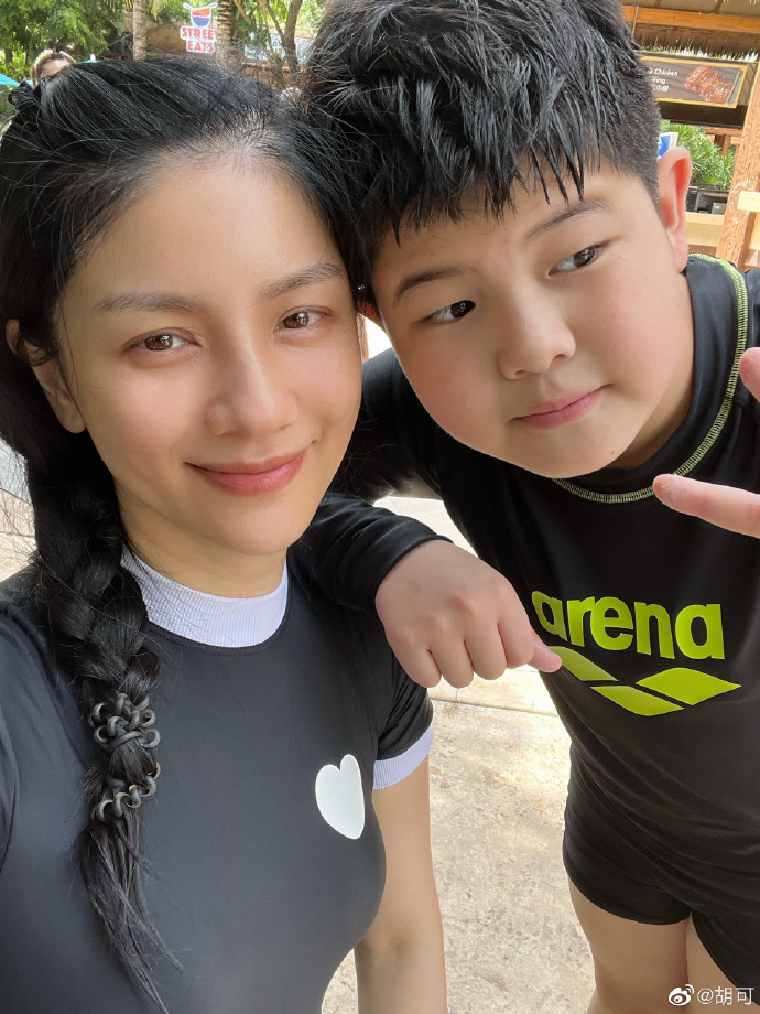 胡可晒与儿子们自拍合照 吐槽孩子大了拍照不易(3)