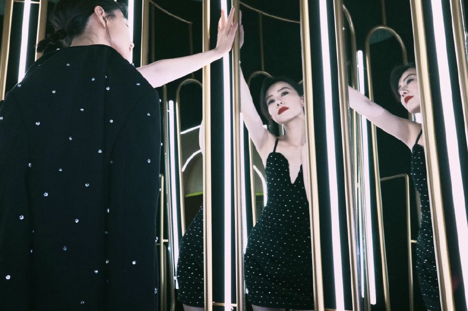 高圆圆着黑色西服内搭吊带裙吸睛 露香肩美腿大秀好身材(5)