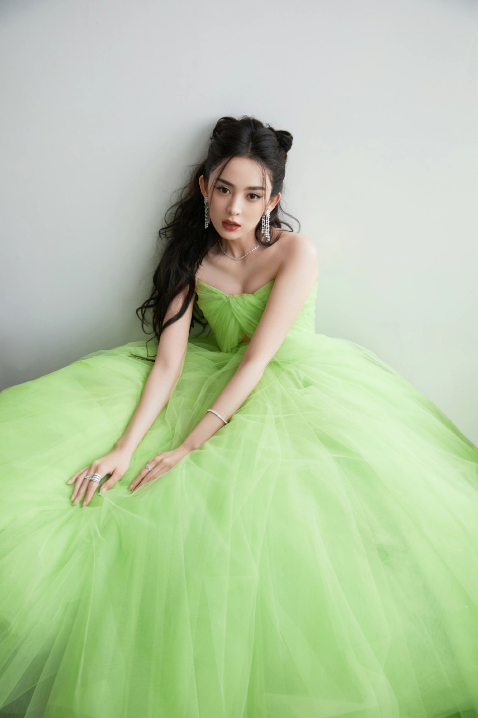 古力娜扎着绿色蓬蓬裙大片释出 侧颜立体精致妩媚动人(6)
